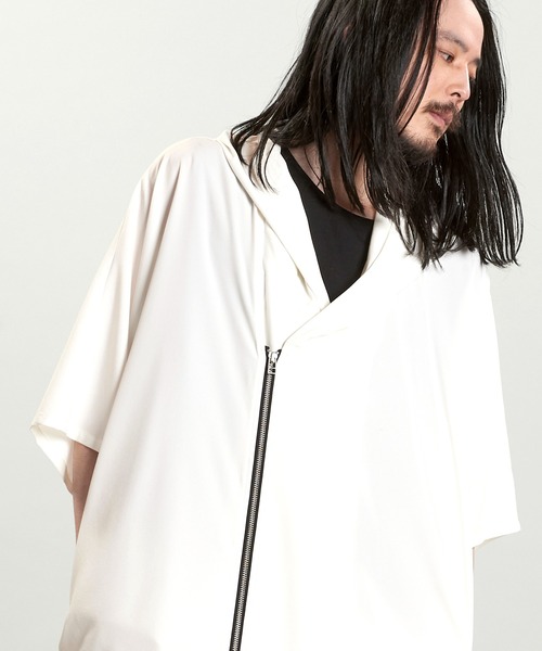 456006-245S フードドルマンZIP BIG-SH 2025 S/S NO ID. COLLECTION ライダースのエッセンスを取り入れた、フード付きZIPシャツ。丸みを帯びたドルマンスリーブとボリュームのあるBIGシルエットが、軽やかさと存在感を両立させる。前合わせにはダブルZIPを採用し、着こなしにアレンジの自由度をプラス。シャツ地ながらアウターライクなルックスに仕上げ、両脇の切り替えに沿って配されたシームポケットや、背面のインバーテッドタックが立体感を演出。独創的なモノトーンプリント柄は、スタイルにモードなアクセントを添えます。 主な特徴: ダブルZIP仕様のフード付きBIGシャツ 丸みを帯びたドルマンスリーブと立体感のあるシルエット 薄手シャツ素材で軽やかに着られるアウターライクな仕上がり 両サイドにシームポケット、バックにインバーテッドタック モノトーンプリントがアクセントに 同柄トラウザーズとのセットアップにも対応 おすすめシーン: 一枚で主役になるモードスタイリングに 軽羽織として活躍する春のレイヤードに アート感あるストリートスタイルのアクセントに 機能性と独創性を備えた一着が、春の着こなしに自由な余白をもたらします。
