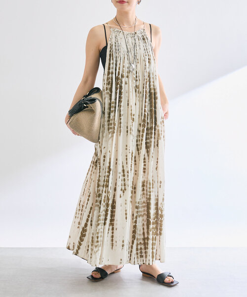 リゾートムード満載な着映えワンピ ●デザイン オリジナルのタイダイプリントが目を引くキャミドレス。 職人の手で寄せられたハンドプリーツが、前後に贅沢に施された一枚。 ボリューム感あるシルエットがシーズンムードを高めてくれます。 後ろのループで肩ひもの長さを調整可能。 インナーには、チューブトップ型のブラトップや、à Niceアイレットニットタンク(RDZ5051505A0001)を合わせていただくのがおすすめ。 程よい透け感が涼し気な印象のキャミドレスは、旅行やお出かけにも大活躍間違いないアイテムです。 ▼ATTENTION▼ ※手洗いは可能ですが、手作業で糸を通してプリーツを寄せているため、 繊細なお作りになっていますのでお取り扱いに注意いただきますようお願いいたします。 ●素材 レーヨン 58% 綿 30% 麻 12% ・柔らかく通気性の良い素材 洗濯方法:手洗い可 透け感:ややあり 裏地:あり 伸縮性:なし 生地の厚さ:ふつう 光沢:なし ファスナー:なし ポケット:あり 【à Nice (ア ・ニース)】 刺繍やレースなどクラフトテクニックを使ったアイテムで、 夏のバカンスムードを高めてくれる 新しいリゾートラインのミニコレクション。 砂浜でも街中でもシーンに合わせて楽しんでいただける 大人の遊び心のあるスタイルを提案します。 -------------------------------------------------------------------------------- 【注意点】 ※画像の商品は光の照射や角度、お使いのモニター環境により、 実物と色味が異なる場合がございます。 ※入荷状況により、お届け予定が前後する場合があります。 ※工場の生産の都合上、納期が変更になる場合がございます。検品や輸送の関係で、発送日が前後しますのでご了承ください。また、入荷状況により、お客様への発送が店頭販売より遅れる場合もございます。 ※追加生産商品は、一部の店舗、通販で販売中の場合がございます。 予めご了承下さい。 ※サンプルでの撮影、計測をしております。商品の仕様が一部変更になる場合がございます。 ※撮影サンプル品はブランドタグがついておりません。製品にはタグがつきますので、製品の表に縫い糸が見える場合がございます。 ---------------------------------------------------------------------- 【お買い物をもっと便利に楽しく♪】 ●「商品のお気に入り登録」で・・・ ラスト1点や再入荷の通知が届きます。 登録して頂いた商品だけが対象となる、あなただけのタイムセールが開催されることも! ●「ブランドのお気に入り登録」で・・・ 新商品や再入荷など、いち早くブランドのお得な情報を 受け取ることができますので、ご登録をおすすめします! --------------------------------------------------------------------------------