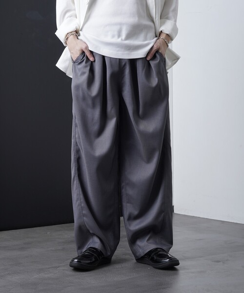 PUBLUX ONLINE LIMITED →EC限定:店頭展開のない限定アイテムです。2025 Spring & Summer item●ウエストから広がる2タックは裾にむかってやや細くなるバレル型のシルエット。●キレイ目なスタイリングには無地のカラー、すこしカジュアルに着崩したい時はチェック柄を合わすのがおススメな豊富なカラーバリエーション。●ウエストは楽に着用ができるゴムを採用したイージーパンツ。==========◆おすすめコーディネートトレンドのデニムシャツやチェックシャツとの相性は◎シーズン通して履きこなせるベーシックなカラーリングは様々なトップスと合わせても◎無地のTシャツはチェック柄との相性が抜群におススメ。絶妙なシルエットはスタイリングのレベルを一つ上げてくれること間違いなし。---※掲載画像の商品の色味は、屋外や屋内の光の照射や角度により実物と色味が異なる場合がございます。※また表示のサイズ感と実物は若干異なる場合もございますので、予めご了承ください。※着用、お取り扱いの際は、商品についている品質表示とアテンションタグを必ずご確認下さい。【PUBLUX/パブリュクス】その瞬間を大切に、なりたい自分になれたら。いま着たいリアルクローズを自由な感性で提案する、ジェンダーレスなストリートブランドです。