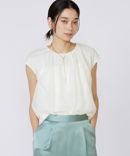 身頃には2枚のチュールを重ねた一点で着映えるブラウス。ギャザーを重ねた襟ぐりはランダムな生地の重なりによってラフな雰囲気をもたらし大人な印象に。素材特性を活かしたことで地味にまとまることなく一目惚れの1着が完成しました。 ・水洗い可