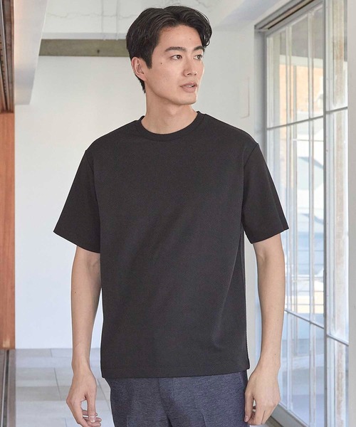 単色なのに奥行きがある。 異素材ミックスで魅せる、大人の万能Tシャツ。 【特徴】 ・身頃にフクレジャガードチェック素材を使用し、立体感のある陰影を表現 ・袖には伸縮性のあるポンチ素材を使用し、動きやすく快適な着心地に ・異素材の組み合わせがさりげなく主張する上品なドッキングデザイン ・単色ながらも奥行きのあるルックスで、シンプルになりすぎないのが魅力 ・1枚で主役になるのはもちろん、羽織りのインナーとしても映える万能アイテム ・程よくゆとりのあるリラックスシルエットで抜け感も◎ 【コーディネート提案】 ・スラックスやワイドパンツと合わせて、大人のきれいめカジュアルに ・ショーツ+サンダルで、抜け感ある夏スタイルにもマッチ ・シャツジャケットやカーディガンのインナーとして、素材感のアクセントに◎ ・アクセサリーやキャップと組み合わせて、都会的なストリート要素をプラスしても◎ ・カラーを活かして、同系色のレイヤードスタイルで洗練感アップ