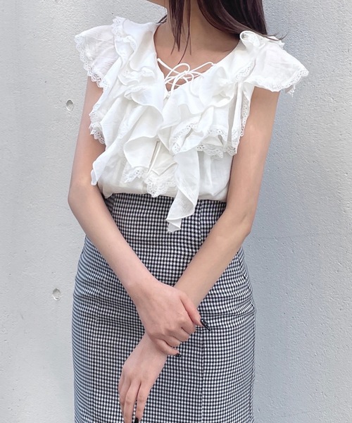 【 Design 】 ・フロントのフリルが華やかな印象になる大人可愛いブラウス ・ノースリーブで夏場涼しき着用できます。 ・胸元の編み上げディテールがアクセントになり、トレンド感とクラシカルな雰囲気を両立。 【 Fabric 】 透け感: あり 厚さ : 薄い 伸縮性: なし 裏地 : あり 【 Styling 】 ・デニムやタイトスカートと合わせて、カジュアルにもキレイめにも着まわし可能な1枚です。 ・スニーカーやフラットシューズを合わせると、甘さを抑えつつラフな着こなしも。 ・フェミニンな雰囲気で着たい方は、チェック柄やマーメイドスカートがオススメ♡ 【 お届け予定について 】 納期は遅延などの影響も考慮し少し先に設定しております。 お届け予定は前後する可能性がございます、ご了承くださいませ。 ※サンプルでの撮影のため、実際のものと仕様や色が異なる場合があります。 ※室内、室外での撮影のため実際より明るく映っていたり、暗く映っていたりする場合がございます。 ※品質表示を必ずご確認下さい。 ※予約商品は遅延などの影響により前後する可能性がございます。 【 one way ZOZOTOWN お買い物ガイド 】 ▼商品のお気に入り登録 ♡をクリック! 完売カラーの再入荷通知や、ラスト1点の通知、セールの通知をお知らせします。 ▼ブランドのお気に入り登録 新商品や再入荷など、いち早くone wayのお得な情報を受け取ることができます。 ※他のキャンペーンにより、期間中に価格が変動する場合があります。 ※セールは予告なく終了させていただく場合もあります。