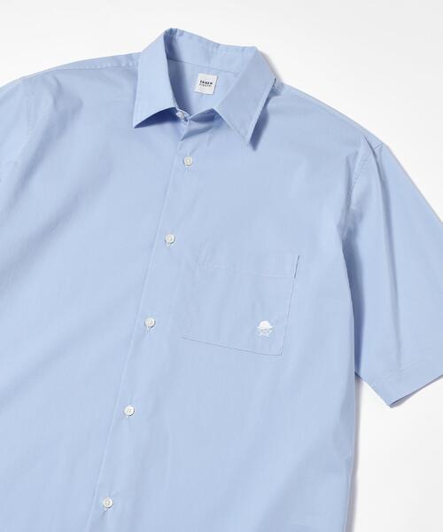 豊富な色・柄から選べる、上品なコットンナイロン半袖シャツ 【デザインポイント】 少しゆったりとしたリラックス感あるシルエットを採用。 小ぶりなレギュラーカラーを合わせた上品なバランスが、様々な着こなしに活躍してくれる半袖シャツです。 ほどよいハリ感とキレイな表面感が特徴的なコットンナイロン素材を使用。 さわやかなブルー系を中心にした豊富な色を展開。 春夏のスタイリングに活躍してくれる一枚をお選びいただけます。 胸元にはTAKEO KIKUCHIらしいアイコンをワンポイント刺繍。 ボーラーハットにメガネとヒゲを組み合わせ、丸みのあるラインでやわらかな印象に仕上げました。 【仕様】 ・ポケット数:胸×1 ※この商品はWEBと一部店舗限定展開の商品になります。 ※照明の関係により、実際よりも色味が違って見える場合があります。また、パソコン・スマートフォンなどの環境により、若干製品と画像のカラーが異なる場合もございます。 モデル情報:身長182cm B92 W80 H93 着用サイズ:03(L) 店舗へのお問い合わせ商品番号:G87-82100 ●製品寸法: 01(S):着丈73cm B117cm 袖丈28cm 肩幅48cm 02(M):着丈75cm B120cm 袖丈29cm 肩幅49cm 03(L):着丈77cm B123cm 袖丈30cm 肩幅50cm 04(LL):着丈79cm B127cm 袖丈31cm 肩幅52cm 05(3L):着丈79cm B131cm 袖丈32cm 肩幅53cm 備考: