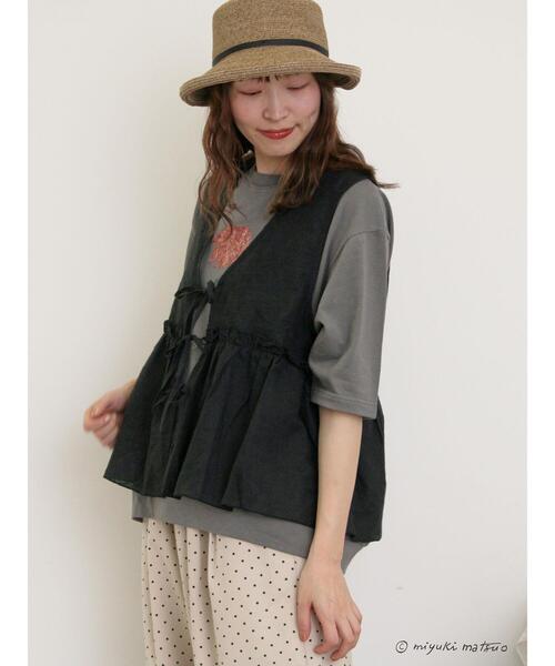 イラストレーターの松尾ミユキさんとのコラボレーション第4弾。 鳥や植物モチーフの刺繍が施されたベスト。 フロントで結ぶリボンも愛らしいアクセントをプラス。切り替えにはギャザーを加えて、ふんわりとしたシルエットに仕上げました。 シンプルながらも華やかさがあり、スタイリングに表情の変化をもたらすアイテムです。 ※商品画像は、撮影環境やお客様のご利用のPC・スマートフォンのモニター環境などにより実物と色味に差異がある場合がございます。