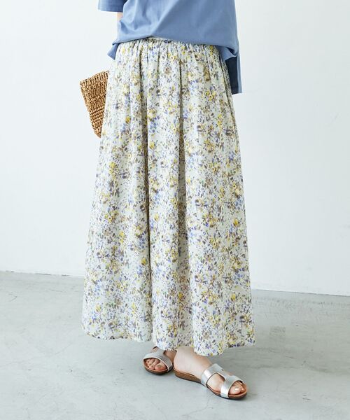 華やかなフラワーモチーフで、春夏のシーズンムードを高めるスカート。 モチーフがぼやけたデザインの小花柄なので甘すぎず着やすい柄になっています。 柔らかく着心地の良い綿100%の素材を使用し、暑い時期でも快適に涼しく過ごせます。 ●ポイント ウエストゴム仕様の楽な穿き心地で、春夏のベタつく時期にも快適。 裏地付きなので透け感が気にならず1枚でさらっとお召しいただけます。 ●おすすめコーデ カジュアルにTシャツ合わせでも、キレイ目にハイゲージニット合わせでも合わせやすく、同シリーズのブラウスと合わせてセットアップとして着用も可能です。 (No.3053035836 フラワープリントフレアスリーブブラウス) 【スタッフ着用コメント】 〈スタッフA〉 20代後半/158cm/骨格ストレート/普段サイズM/着用サイズ38 サイズ感 : ウエストはゴムで丁度いいです。足首が見える丈感。 素材感: 薄手で軽い綿素材。サラッとした肌触り。 着用感: 着心地が軽く肌触りもサラッとしていて涼しげです。ぼやけた小花柄で甘すぎず大人な印象です。 ※取り扱いについては、商品についている洗濯表示にてご確認下さい。 ※照明の関係により、実際よりも色味が違って見える場合があります またパソコン・スマートフォンなどの環境により、若干製品と画像のカラーが異なる場合もございます。 ※商品の色味は、商品アップ画像をご参照ください。 【注意事項】 ・画像の商品はサンプルです。 ・サイズ表記はあくまで目安となります。 実際の商品と仕様、加工が若干異なる場合があります。