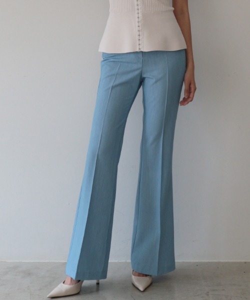 美脚シルエットを叶えるスリムフレアパンツ。テンセルデニムのような艶のある薄手布帛生地を使用し、しなやかさと軽やかさのある履き心地で真夏にも最適。センタープレス入りで脚線を真っ直ぐに見せ、爽やかさとキレイめな印象をもたらすのでオフィス等、きちんと感を求められるシーンにも活躍します。※発送上の状態によって商品がシワになる場合がございます。※商品により色落ち・色移りがある場合がございますので、品質表示をご確認の上、お取り扱いにご注意くださいませ。==============================今季より事業変更のため、ショップ名が「DURAS ambient」から「AMBIENT」へ変更となります。それに伴い、商品タグが「DURAS ambient」と「AMBIENT」で混在している可能性がございますので、予めご理解とご了承の程よろしくお願い致します。なお、ショップ名は変更となりますがブランドコンセプトはこれまでと変わらず、更なる発展に努めて参りますので、今後とも変わらぬご愛顧のほどよろしくお願い申し上げます。==============================