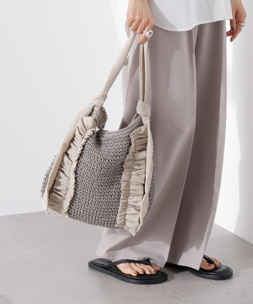 【2025 SS】NANO universe(ナノ・ユニバース)『フェミニンなムードを演出する大ぶりフリル』大ぶりなフリルが大人可愛いペーパー編みバッグ。軽くてソフトな手触りのペーパーヤーンがシーズンムードを盛り上げてくれるので、春夏のお出掛けシーンに重宝しそう。■デザイン・ペーパーヤーンで編み上げたナチュラルな風合いのショルダーバッグ・荷物を入れても型崩れしにくいデザイン・大ぶりフリルながらも落ち着いたカラー配色が甘さをセーブ・内ポケット付き■素材・シーズンムードを盛り上げる軽くてソフトな手触りのペーパーヤーン・持ち手と裏地は伸縮しない素材を使用■カラー展開・春夏らしいナチュラル・合わせやすいグレージュ■コーディネート・いつものコーデに合わせてフェミニンなムードを効かせても◎・ロング丈のワンピースに合わせてリゾート感を出しても素敵■サイズ感・旅行などのお出掛けにも重宝しそうなやや大き目のサイズ感※サンプルにて撮影、採寸を行う為、実際にお届けする商品と仕様やサイズが異なる場合がございます。予約時は生産の都合上、お届け予定時期が前後する場合もございますので、予めご了承下さい。※光の当たり具合や撮影環境により色味が異なる場合がございます。正しい色味はスタジオ画像の色味をご参照ください。※こちらの商品は、アウトレット店舗での取り扱いになります。直接店舗へお問い合わせの際はアウトレット店舗へお願い致します。プロパー店舗での取り扱いはございませんので、ご了承ください。▼商品のお気に入り登録お気に入りアイテムの再入荷や残り1点の通知を受け取ることができます。▼ブランドのお気に入り登録新作アイテムの入荷や人気アイテムの再入荷、タイムセールやクーポンなど、いち早くブランドのお得な情報を受け取ることができます。