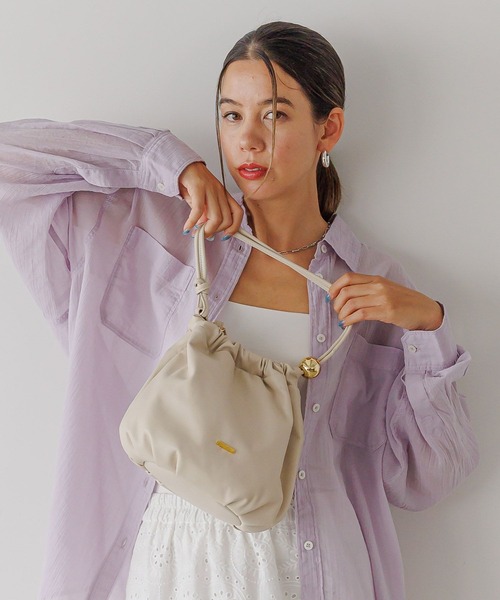 ころんとフォルムがかわいいマルチウェイの巾着ショルダーバッグーーーころんとした丸みのあるフォルムの巾着型バッグ。滑らかで柔らかい質感の合皮を使用し、しっとりとしたタッチで肌触りの良さも特徴です。取り外し可能のショルダーストラップ付きでハンドバックとしても使えるマルチWAYデザイン。レザーの質感で幅広く合わせられ、シンプルなスタイルのアクセントにもなるため軽装な春夏スタイルにも相性抜群です。ーーー※屋外での撮影画像は光の加減で実際の商品より明るく見えたり、風合いが異なって見える場合がございます。 商品の色味はスタジオ撮影の画像を参考にして下さい。-------------------------------------≪お買い物をよりお楽しみいただくために≫◆商品のお気に入り登録(ハートマークをクリック)完売カラーの再入荷通知や、完売間近の通知、セールの通知も受けることができます。◆ブランドのお気に入り登録新商品や再入荷など、いち早くブランドのお得な情報を受け取ることができます。-------------------------------------