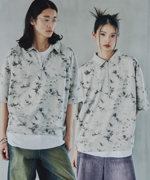 【素材】 ポリエステル素材を使用しています。 シワになりにくいのが最大の特徴で洗濯時もシワを気にすることなくラフにお使いできる素材です。 また、軽さもあり着疲れしにくい素材感です。 【デザイン】 人気のハーフジップのポロシャツにトレンドのヴィンテージ加工を施した今年イチオシのデザインです。 ヴィンテージ加工は『色褪せ』や『ダメージ感』を全面にプリント加工で仕上げた1枚。 着回しやすい、落ち着いたカラーリングがポイントです。 長めに設定したメタルジップがアクセント。 ゆったりとした身幅ながら短めのクロップド丈に仕上げているので、スッキリとしたシルエットに仕上げており、全体的なバランスが非常にきれいでモードな雰囲気のあるサイズ感、シルエットになっています。 【スタイリング】 インナーを裾から覗かせた、レイヤードスタイルもおススメです。幅広いボトムスに相性が良いですが今季トレンドであるデニムの合わせが特にオススメで非常に今年らしいスタイリングが完成します。 【推奨サイズ】 01サイズ(S):160~170cm 02サイズ(M):165~175cm 03サイズ(L):170~180cm ※標準体型を基にした目安になります。 - BRAND CONCEPT - 時代を超えて支持されるトラディショナルなアイテムをベースに、アソビ心とストリートの自由な発想を取り入れ、日本独自のミックススタイルを提案します。 【気になる商品はお気に入り登録をおススメ】 ▼商品のお気に入り登録 完売しているカラーの再入荷通知や、ラスト1点、セールの通知をお知らせいたします。 ▼ブランドのお気に入り登録 新商品や再入荷など、いち早くブランドの情報を受け取ることができます。 ※照明の関係により、実際よりも色味が違って見える場合があります。また、パソコン・スマートフォンなどの環境により、若干製品と画像のカラーが異なる場合もございます。 モデル情報:身長175cm B83 W66 H87 着用サイズ:03(L) 店舗へのお問い合わせ商品番号:170-32310 ●製品寸法: 01(S):着丈63cm B124cm 袖丈25cm 肩幅58cm 02(M):着丈65cm B128cm 袖丈26cm 肩幅60cm 03(L):着丈67cm B132cm 袖丈27cm 肩幅62cm 備考: