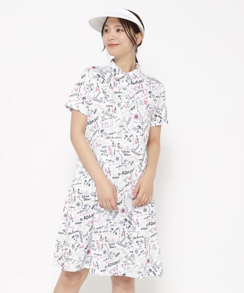 【デザイン】 総柄のサマーロゴデザインが視線を集める、華やかでスポーティーな半袖ワンピースです。 裾にかけて緩やかに広がるAラインシルエットが、スイング時にひらりと美しい動きを生み出します。 プレー中のアクティブさを引き立てるだけでなく、女性らしいエレガントさも演出。 さらに、ゴルファーにうれしい右後ろポケットを備えており、実用性とデザインが融合したゴルフ場で映えるアイテムです。 【素材】 本体にはポリエステル100%のストレッチがきいた柔らかな素材を採用。 動きやすさと快適な着用感を提供します。 また、ペチコートが付属しており、透け感を気にせず安心して着用が可能。 紫外線対策にうれしいUVカット機能が付いています。 吸水速乾機能が付いていますので、汗をかく季節も快適さを保ちます。 見た目の上品さだけでなく、プレー中の快適さをしっかりサポートする機能性を持つワンピースです。 【仕様】 ・ポケット数:横×2 後ろ×1 ・裏地なし ・ペチコート付き ※こちらの商品はやや透け感があります。 ※この商品はサンプルを使用して撮影しております。デザインや配色などが実際の商品とは一部異なる場合がございますのでご了承ください。 ※照明の関係により、実際よりも色味が違って見える場合があります。また、パソコン・スマートフォンなどの環境により、若干製品と画像のカラーが異なる場合もございます。 モデル情報:身長160cm B72 W58 H84 着用サイズ:38(M) 店舗へのお問い合わせ商品番号:119-52500 ●製品寸法: 38(M):着丈90cm B91cm 袖丈18cm 肩幅37cm 40(L):着丈92cm B97cm 袖丈19cm 肩幅39cm 42(LL):着丈94cm B103cm 袖丈19cm 肩幅40cm 備考: