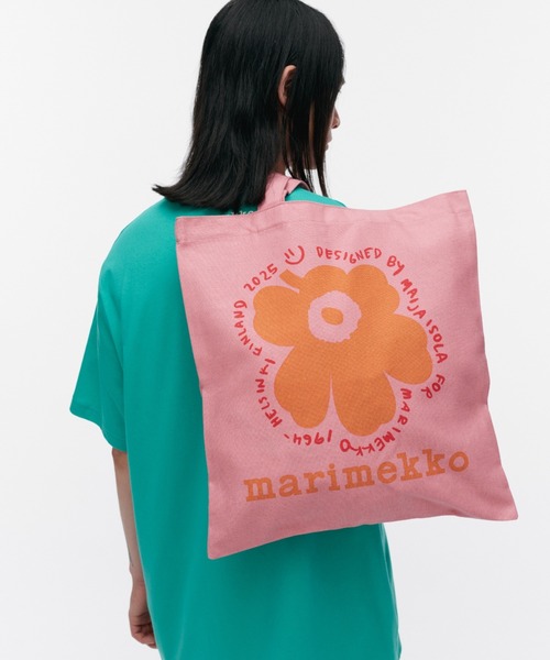 『Marimekko Kioski』 マリメッコのアイコン的プリントを再解釈し、無限のワードローブを提案するジェンダーニュートラルなストリートウェア Marimekko Kioski(マリメッコ キオスキ)。「他人の真似はせず、自分らしく」をキーワードに、作り物ではないオーセンティックなスタイルを追求したコレクション。【テキスタイルデザイン:Maija Isola(マイヤ・イソラ)】 Unikko(ウニッコ):花フロントに大きく配置したUnikko柄と、そのまわりを囲うように添えたメッセージから遊び心が溢れるVankkaトートバッグ。コットンとリネンの混紡素材を採用。肩掛け、手持ちもできる丁度良いサイズ感はデイリーバッグとして活躍します。下部にマリメッコのロゴ入り。※商品ひとつずつの柄の出かたが異なるため、表示画像のディテールと多少異なるデザインのものが届く場合がございます。予めご了承ください。