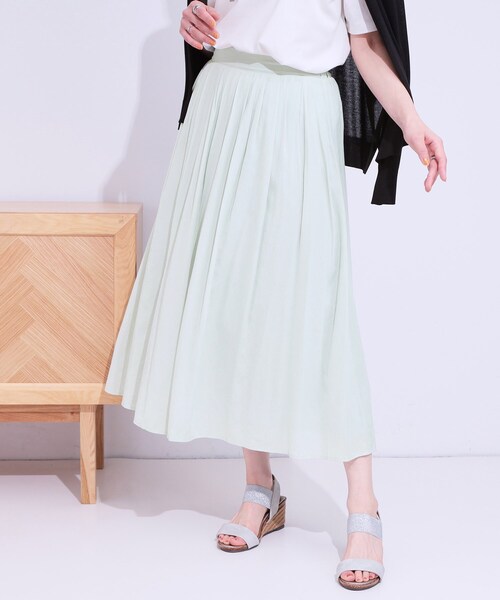 【デザイン】 軽やかな素材がふんわりと涼し気にゆれる接触冷感機能付きのフレアスカートです。 フロントにはタックデザインがあることでさりげなくお腹周りもカバーしてくれるデザインに。 ウエスト後ろゴム仕様で穿きやすくストレスフリーなのも嬉しいポイントです。 【スタイリング】 Tシャツに合わせてフェミニンカジュアルに着こなせばデイリー使いや休日のお出かけスタイルにも。 ブラウスに合わせたきれいめなオフィスカジュアルにもおすすめです。 同素材のブラウス(741-82031)とセットアップでの着こなしも楽しんでいただけます。 【素材】 シアー感のある軽やかで柔らかい素材を使用しています。 ※裏地あり(接触冷感機能付き) 【仕様】 ・ポケットなし ・ウエスト後ろゴム ・裏地あり ※こちらの商品はやや透け感があります。 ※照明の関係により、実際よりも色味が違って見える場合があります。また、パソコン・スマートフォンなどの環境により、若干製品と画像のカラーが異なる場合もございます。 モデル情報:身長163cm B81 W59 H88 着用サイズ:02(M) 店舗へのお問い合わせ商品番号:741-72017 ●製品寸法: 01(S):W60~70cm H90cm 総丈80cm 02(M):W63~73cm H93cm 総丈81cm 03(L):W66~76cm H96cm 総丈82cm 04(LL):W70~80cm H100cm 総丈84cm 備考: