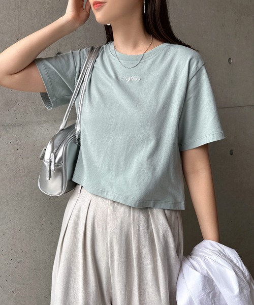 コットン100%のサラッとした肌ざわりが心地よく、 デイリーに使いやすいTシャツ・シリーズに、 ミニ刺繍・ショート丈・半袖Tシャツが新登場です! コンパクトすぎない身幅と ショート丈の絶妙なバランスにこだわった1枚。 体形の大小ではなく、着こなしたいイメージによって サイズをお選びいただけるM/Lサイズ展開。 胸元と後ろの襟元にある、さりげないミニ刺繍がポイント◎ そのまま1枚で着るのはもちろん ワンピースやサロペット、ビスチェなどとレイヤードすると 胸元から刺繍がちらっと見えてアクセントに! ハイウエストのボトムとの相性も抜群です◎ さらっと着るだけで旬の顔になる、 1枚持っておくと便利なおすすめTシャツです! ※撮影時のライティング、ご覧になっているモニター・PC環境により 実際の商品と色味が異なって見える場合がございます。 ご了承の上お買い求め下さい。 素材: 【本体】 コットン・綿100% 【リブ部分】 コットン・綿100% ≪備考≫ 伸縮性:あり 透け感:薄い色あり 生地の厚さ:やや薄手 肌ざわり:さらっとしている その他:コーマ天竺 生産地:中国 洗濯機:可 ドライクリーニング:不可 ウェットクリーニング:可