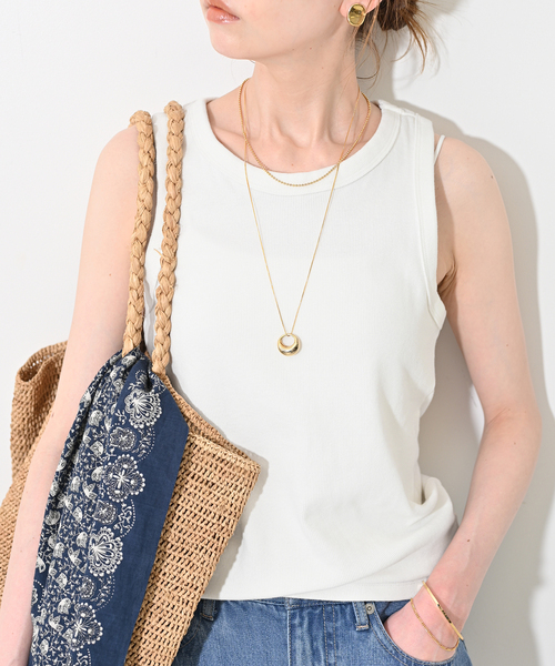 洗濯機使用可能/4色展開【2025SS】SLOBE IENAPOINT・春夏シーズンにマストなアメスリのリブタンクトップが登場!・ありそうでないニュアンスカラーのバリエーションも魅力。【素材の特徴】綿素材のさらっとしたリブタンクトップ。普通程度に厚みがあり、透け感も気になりにくいのが嬉しいポイント。製品染めと加工により独特の風合いと色合いが楽しめ、柔らかい肌触りに仕上げています。 【デザイン】今年らしいトレンド感あふれる一枚。アメスリ部分のアームはカーブをつけすぎないことで、アメスリに抵抗がある方にも取り入れやすいバランスに仕上げています。【コーディネート】シアー感のあるトップスのインナーなど快適さとスタイルを両立させたアイテムです。夏にはヘルシーにトップスとしても着用しやすい生地感。パッと明るくなるホワイトのほか、くすみカラーはコーディネートに柔らかに馴染みます。シリーズでタンクトップ(品番25070912050020)もございます。※こちらの商品はカラーによって組成、アテンション、取り扱いが異なります。《アテンションについて》色あせ :カーキ、サックスブルーB **********************透け感:ややあり(ホワイトのみ)裏地:なし伸縮性:ややあり光沢感:なし生地の厚さ:普通**********************【スタッフ着用コメント】《スタッフ名:natsu》年齢:30代後半/身長:160cm/体型:標準/普段サイズ:M~L/着用サイズ:フリーサイズ感:フィット感のあるサイズ感でもたつかず、ジャケットやシャツのインナーにも良さそうです。素材感:ぺらぺらの生地感ではなく普通程度の厚みがあり、へたりにくそうな安心感があります。着心地:同シリーズのタンクトップよりも首まわりは詰まっており、インナー感が抑えられているためノースリーブのトップスとしても使いやすい形です◎**********************※取り扱いについては、商品についている品質表示でご確認ください。こちらの商品は、SLOBE IENAでの取り扱いになります。直接店舗へお問い合わせの際はSLOBE IENA店舗へお願い致します。※照明の関係により、実際よりも色味が違って見える場合があります。またパソコン・スマートフォンなどの環境により、若干製品と画像のカラーが異なる場合もございます。予めご了承ください。※商品の色味は、商品アップ画像をご参照ください。本体:洗濯機洗い(弱)