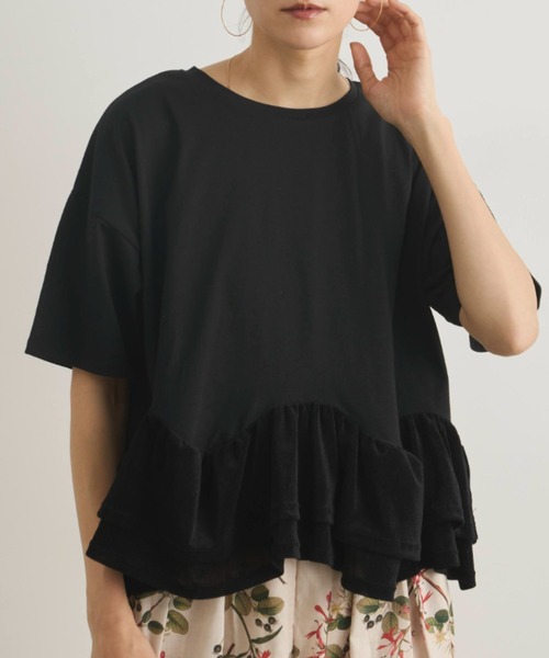 春夏に大活躍間違いなしのカットソーに女性らしさをプラス 甘くなりすぎずこなれ感を演出する裾フリルデザイン ■styling ・ボリュームシルエットのパンツと合わせたリラクシーな着こなし ボトムスを選ばない、一枚でサマになる裾フリルデザインのトップスは リラクシーなパンツと合わせてもラフになりすぎず、程よいカジュアルさのあるコーデが楽しめます。 《point》 ・程よくふわっとした裾デザイン ・程よい肉厚カットソーで1枚でサマになる ・カットソートでもカジュアルになりすぎない女性らしいデザイン 《detail》 ・シルエットにメリハリをつけるように腕周りはスッキリ仕様 ・裾はフリルデザインになっており、立体感のある雰囲気に 《fabric》 ・裾部分の生地はややラメ感のある爽やかな素材 ・柔らかな綿混素材 ・優しい肌触りでこれからの季節にもぴったり 素材 : 本体: コットン60%、ポリエステル40% 別地部分: ポリエステル92%、ポリウレタン8% サイズ : 身幅 : 53cm 肩幅 : 55cm 着丈 : 54.5cm …………………… 透け感 : なし(白は若干あり) 厚さ:普通 伸縮性:あり 裏地:なし お手入れ方法 手洗い 〇 洗濯機をご使用の際はネットに入れてのお洗濯をおすすめします。 濃色のものは多少色落ちしますのでお洗濯の際は淡色のものとは別にお洗いくださいませ。 濡れた状態での放置や浸け置き洗いは厳禁です、染料が流出しやすくなり、色落ち、色移り、色滲みの原因となります。 洗うと多少縮みます、予めご了承くださいませ。 詳しくは付属の「お取り扱い上のご注意」をご確認ください。 …………………… ※ご注意※ ・屋外の光や照明の当たり具合で、実際の商品の色味とカラー別画像の色味に若干の違いが発生する場合がございます。 ・詳細画像と併せてご確認の上、ご注文いただきますようお願い致します。 【 Libra Cue 】 “包み込むような気持ちよさを” 快適で豊かな生活を送りたい そんな暮らしの”きっかけ”となるデイリーウェアをご提案します 【 商品のお気に入り登録 】 完売カラーの再入荷通知やラスト1点の通知プライスダウンの通知も受け取ることができます。 【 ブランドのお気に入り登録 】 新商品や再入荷など、ブランドの情報をいち早くお知らせします。 ※ご注文いただいた予約商品のお届け時期確認は、注文履歴ページより行えます。