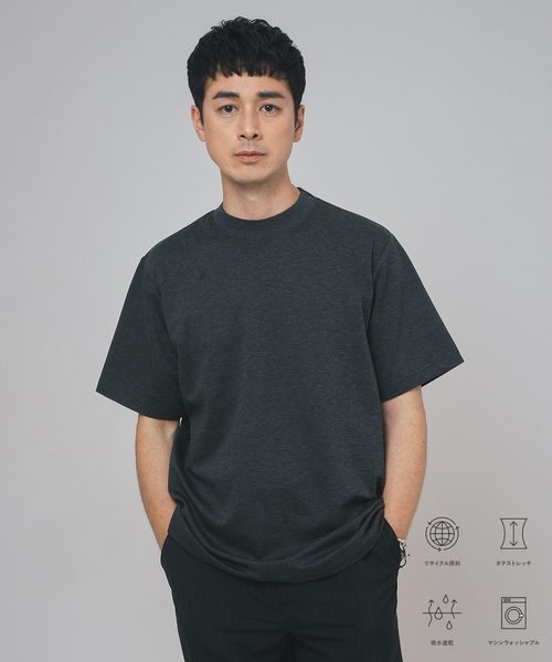 ・カジュアルでの一枚使いから、ビジネスでのジャケットのインナーまで全方位で活躍する一枚着・衿にストレッチを入れたニットのリブを採用することで、衿伸びがしずらく、型崩れしにくいTシャツ・ネックを少しだけ高く設計することで、ネック部分が首に沿って上品な見た目になっています・適度な肉感とハリがある、ジャストルーズシルエット・ネックをやや高く設計しており、程よく上品な印象に・モクロディジャージに、地球に優しいリサイクルポリエステルRENUを使用した素材を採用。ケミカルリサイクルなので、分子レベルで分解、再重合して何度でも再利用が可能・表面をニットツイル調、裏面はメッシュにより非常に軽い仕上げノンストレスで、イージーケアなファンクション素材。・ストレッチ性・吸水速乾・マシンウォッシャブル可【ご注意】※照明の関係により、実際よりも色味が違って見える場合があります。またパソコン・スマートフォンなどの環境により、若干製品と画像のカラーが異なる場合もございます。※商品の色味は、商品アップ画像をご参照ください。本体:手洗い可能
