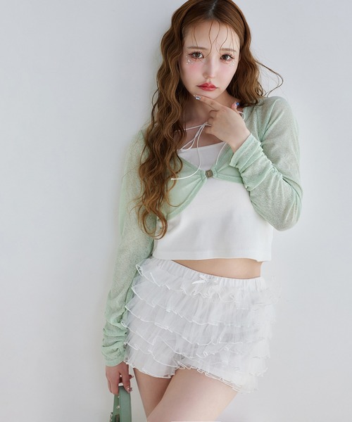 ~NICECLAUP 2025 moonlight marine Collection~ 程よい透け感のシアーボレロとシンプルなキャミソールがセットになった、着回し力抜群のアイテム。 ボレロはショート丈でスタイルアップ効果◎キャミは細めの肩紐で華奢見えし、女性らしさを引き立てます。 それぞれ単体でも使えるので、気温やシーンに合わせてコーデの幅が広がるのも嬉しいポイントです。 ■オススメスタイリング デニムに合わせて大人カジュアルにまとめれば、抜け感のあるこなれスタイルが完成。 フレアスカートと合わせて甘めに仕上げれば、フェミニンムードたっぷりのコーデに。 キャミの上にワンピースを重ねてレイヤードすれば、トレンド感も演出できておすすめです◎ ------------- 裏地: なし 伸縮性:あり 生地の厚さ:普通 生地の重さ:普通 洗濯 : ------------- ※サンプルでの撮影のため、実際のものと仕様や色が異なる場合があります。 ※室内、室外での撮影のため実際より明るく映っていたり、暗く映っていたりする場合がございます。 ※品質表示を必ずご確認下さい。 【商品のお気に入り登録】 完売カラーの再入荷や、ラスト1点のお知らせ、セールの通知を受け取ることができます。 【ブランドのお気に入り登録】 新作入荷や再入荷情報など、ブランドの情報をいち早くお届けします。 ぜひご登録ください♪ 2025SS