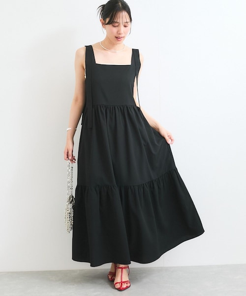 ◆2025春夏◆ <POINT> ・1枚で主役級の存在感を放つ、万能ワンピース。 ・ショルダーストラップが2way仕様で、気分に合わせて異なる表情を楽しめます。 ・肩をしっかりホールドするワイドストラップで安心感のある着心地。 ・シンプルながらも華やかさのあるたっぷり入れたギャザーデザインで、デイリーからお出かけまで幅広く活躍! ・トレンド感のあるロング丈で、さらっと着るだけでお洒落感が叶います。 ・胸元は女性らしいベアトップ型で、ストラップの長さが3段階で調節できるので小柄な方から高身長さんまで着用いただけます。 ・サイドポケット付きで、背中ゴム仕様で着心地と着脱ともに楽ちん◎ 【デザイン・シルエット】 長めに設定したショルダーストラップがポイントで、前後に垂らしてもリボン結びしてアクセントにしても2WAYで可愛く着られます。 ウエスト周りはすっきりさせ、スカートは落ち感のある程よく綺麗なAラインシルエットでフェミニンすぎないシルエットに。透け感の少ない生地なので、インナーを選ばず着られるのも嬉しいポイント! 【素材】 さらりとした軽い素材で、暑い夏の時期も快適に過ごせる1着。 表面に凹凸感のある素材で清涼感がありさらっと着られます。 やや光沢感のあるきれいな表面感は、カジュアルすぎない上品な印象を演出! 身体のラインを拾わない程よい肉感で、滑らかな肌触りでストレスフリーな着心地。 【カラー】 インナーや羽織りを選ばない、ブラックとベージューの2色展開。 【おすすめのスタイリング】 一枚で抜け感のあるスタイリングもちろん、Tシャツやシアートップスなどとレイヤードしてカジュアルダウしたスタイリングもおすすめ。 一枚で着用しサンダルやスニーカーを合わせて、涼しげなカジュアルフェミニンスタイルはもちろん、ジャケットと合わせて綺麗めな着こなしも◎ 手持ちのTシャツやカーディガンなどと合われば、簡単に女性らしい可愛いコーデが完成。 ----------------------------- 裏地:なし 光沢感:なし 透け感:なし 伸縮性:背面のみ ポケット:あり 生地の厚さ:普通 その他:ショルダーストラップの長さ調整可能、後ろ一部ゴムあり 季節:春、夏、初秋 ----------------------------- 【モデル着用サイズ】 メイン画像着用モデル身長:168cm、着用サイズ:F 他モデル身長:160cm、着用サイズ:F ※画像の商品はサンプルです。実際の商品と仕様、加工、サイズが若干異なる場合がございます。 ※画像によっては実際の色味と異なる場合があります。正しい色味は生地アップ画像をご確認ください。