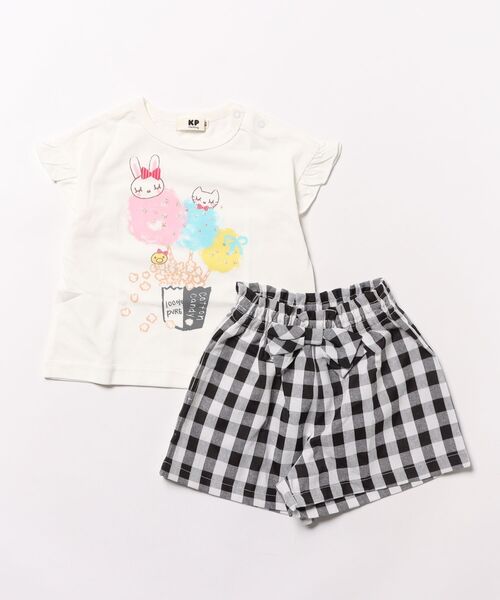 心地よいストレッチとひんやりとした肌触りで、一部植物由来の素材のsoronaを使用。表は綿、裏はsoronaのプレーティングにすることで、表はカジュアルな雰囲気を残しつつ、裏は滑らかでひんやりとした仕上がりになっています。耐シワ性、速乾性、耐ピリング性などのパフォーマンス性に優れています。色によって異なるスイーツのうさぎのmimiちゃんのモチーフがキュートなsorona天竺素材の半袖Tシャツとギンガムチェックのキュロットのセット。ほんのりキラっとするロゴラメプリントがポイント。それぞれ単品使いもできるので、お手持ちのアイテムとコーディネートを楽しめます。80-90cmは左肩開き仕様です。