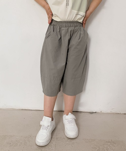 すっきりとしたシルエットが魅力の七分丈バルーンパンツ。軽やかな素材感で、見た目にも涼しく快適な履き心地。 ウエストは総ゴム仕様で脱ぎ着しやすく、動きやすさも抜群。シンプルなデザインなので、トップスを選ばず幅広いコーディネートに活躍します。 デイリー使いや通園、ちょっとしたお出かけにもぴったりの1枚です。