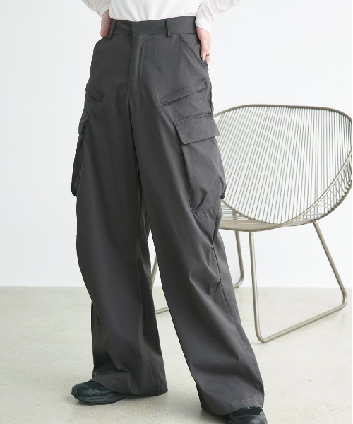 大人ルーズに着こなせるカーゴパンツゆるっとルーズなシルエットと絶妙なチャコールカラーで大人カジュアルなカーゴパンツ。ラフに穿けてこなれる、マストな1本です。■point・アクセントになる大きめポケットデザイン・ルーズなシルエットとウエストラインでスタイルアップ効果◎■detailメンズライクなゆったり感が今っぽい。シーズンレスで飽きのこないデザインです。■fabricさらっと肌触りの良い素材感………………………………伸縮性:あり透け感:なし裏地:なしポケットあり………………………………■coordinateショート丈トップスやコンパクトなシルエットのトップスと合わせるとスタイルアップ効果抜群。カラーアイテムと合わせてメリハリのあるコーデも◎洗濯表記【洗濯処理】水温40℃を限度に、手洗いができます【漂白処理】漂白できません【タンブル乾燥】タンブル乾燥禁止です【自然乾燥】日陰で、吊り干しします【アイロン仕上げ】120℃を限度に、アイロンが使えます【ドライクリーニング】石油系溶剤又はデカメチルペンタシクロシロキサンによる、弱いドライクリーニングができます【ウエットクリーニング】非常に弱い操作による、ウエットクリーニングができます【洗濯表記説明文】蛍光増白剤禁止 あて布使用Attention【お取り扱い上のご注意】この製品は非常にデリケートな生地を使用しております。そのため、激しい運動や強度な力が加われば縫い目が開いたり、目寄れ(織り糸が滑り目が開く)する性質があります。またベルトやバッグ、周囲の壁など、表面の粗いものとの摩擦による引っかかりにもご注意下さい。・濃色のものは染料の性質上、擦られると色移りすることがありますのでご注意下さい。・汗や雨で湿った場合、着用中の摩擦により他の物に色が移る場合があります。
