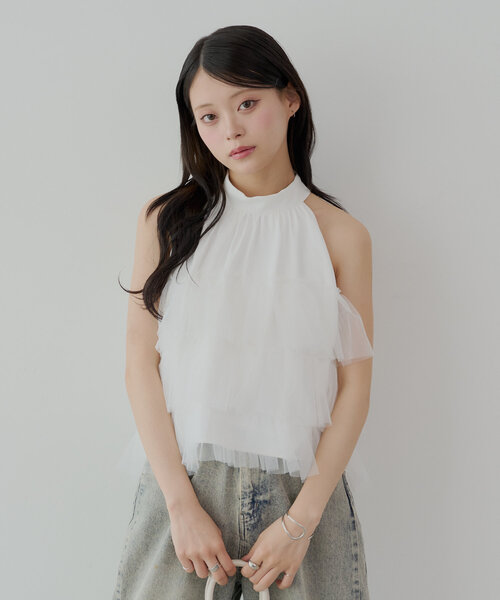 繊細なチュールが贅沢に重なったティアードブラウス ▶商品ポイント ・3段のティアードフリルと歩くたびに揺れるチュールが目を惹きます。 ・首元を美しく見せるハイネックデザインと肩を露出するデザインが、女性らしい華奢なラインを強調してくれます。 ・バックには大きめなリボンを施し、後ろ姿まで可愛く着れます。 ・肌触りの良い素材を使用しているため、着心地も抜群です◎ ▶スタイリングポイント ・デニムパンツと合わせると、上品で女性らしいスタイルで着ていただけます。 ・今年らしくスエットパンツを合わせてカジュアルダウンして着るのもおすすめです。 ・プリーツスカートやタイトスカートと合わせると、女性らしいきれいめスタイルにも。 ▶洗濯表示 洗濯:手洗い可 タンブル乾燥:不可 アイロン:低温処理可※110度まで クリーニング:ドライ・ウエット可 ※取り扱い注意事項(詳しいお手入れ方法は商品タグをご参照ください …………………… 透け感:なし 厚さ:ふつう 伸縮性:なし 裏地:あり …………………… -------------------------------------------- ▼お気に入り登録のおすすめ▼ ハートをクリックしてお気に入りに登録すると 完売カラーの再入荷や残り1点の通知、セールの通知を受けとることができます。 ▼ブランドのお気に入り登録▼ 新商品や再入荷、セール通知やショップのおすすめトピックスなど、いち早くブランドの情報を受け取ることができます。 ▼メルマガ登録▼ Chicoのお得な情報やニュースを一足先にお届けします。 -------------------------------------------- ※商品について ・サイト上のカラー名と、お届け商品に記載されているカラー名が異なる場合がございます。 ・商品の色味は、撮影場所や光のあたり具合などにより色味が違って見える場合がございます 。 また、お客様のお使いのPCのモニター環境などにより色味が違って見える場合がございます。 予めご了承の上ご注文下さい。 ・セールは予告なく終了させていただく場合もございます。 ※商品ページでは、遅延などの影響も考え、お届け予定時期を少し先に設定させていただいております。 予約商品は商品ページに記載しているお届け予定時期よりも早いお届け予定になる場合がございますので、予めご了承ください。 ※返品・キャンセルについて ・着用、洗濯後の返品、交換は致しかねます。 ・商品到着後、着用前に商品を確認して頂きますようお願い致します。 ※画像の商品はサンプルです。実際の商品と仕様、加工、サイズ、素材が若干異なる場合がございます。 ※ご注文いただいた予約商品のお届け時期の確認は、注文履歴ページより行えます。