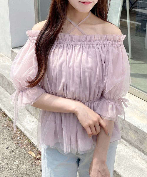 【ガーリー×フェミニンムード漂うチュールブラウス】 ▼Design たっぷりのチュールとホルターネックのデザインが特徴の大人可愛いブラウス。 ヘルシーな肌見せで、大人フェミニンなムードが高まります。 ボリューム感がありながら、ウエスト部分はゴムでしっかりとウエストマークできます。 ペプラムデザインで華奢見えとスタイルアップが叶う一着です。 ▼Styling ペプラムデザインなのですっきりとしたシルエットやタイトなボトムと 合わせるのがおすすめ。 マーメイドスカートで大人フェミニンも、フレアデニムと合わせて大人カジュアルコーデでも◎ ミニボトム合わせで甘めに仕上げるのも可愛い。 スタイリングの幅が広がる持っていて間違いなしのブラウスです。 ・ホルターネックストラップ取り外し可 【以下グレー参考。カラーにより多少の誤差あり】 ・透け感:透ける(表地) ・伸縮性:なし(表地) ・生地の厚さ:薄め(表地) ・裏地:あり ▼Recommend ・ブラウス ・オフショルブラウス ・ホルターネック ・チュール ・リボン
