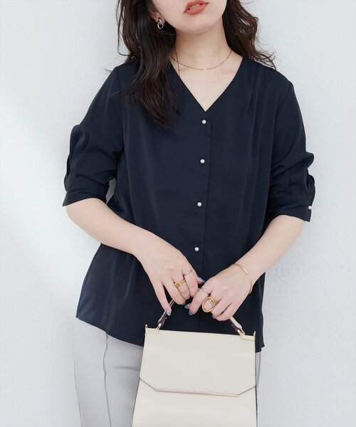 【2025SS natural couture】 パール釦Vネック5分袖ブラウス ■Design パール釦ブラウスに5分袖が登場。 滑らかで落ち感のある着心地の良い生地に、フロントをパール釦使いに仕上げた、大人上品なブラウス。 女性らしいデコルテラインをヘルシーに見せてくれる、程良い開き感のネックライン。 バックスタイルにはさりげなくタックを施し、すっきりとした印象ながらもゆとりのある着心地に仕上げました。 ■Styling マーメイドシルエットやフレアラインのスカートにウエストインして、 大人レディなコーデに仕上げるのはもちろん、デニムやスラックスなど、 カジュアルやメンズライクなアイテムと合わせても◎ お好みで、キャミワンピースやジャンパースカートのインナーとしてお召し頂いても、 雰囲気の違いを楽しんで頂けます。 ■Fabric さらっとした肌触りの良い生地を採用。 ========================= 透け感:淡色系あり 裏地:なし 伸縮性:なし 光沢感:なし 生地感:さらっとした生地感 ========================= ※着用、お取り扱いの際は、商品に付いている品質表示とアテンションタグを必ずご確認ください。 【お気に入り登録でお得な情報がいっぱい】 ・「商品のお気に入り登録」で再入荷通知や、ラスト1点の通知、セール通知をいち早く受け取ることができます。 ・「ブランドのお気に入り登録」で新商品や再入荷など、お得な情報を受け取ることができます! ※店舗の入荷時期は商品によって異なります。 店頭の在庫状況につきましては各店舗にてお問い合わせください。 ※撮影時の光の関係で、画面上の画像と実際のお色とでは若干の色差が生じる可能性がございます。 また、ご覧いただいているモニター画面や、お使いのブラウザによっても、お色の違いがございますことをあらかじめご了承くださいませ。 20250418 2025SS_natu 25SS