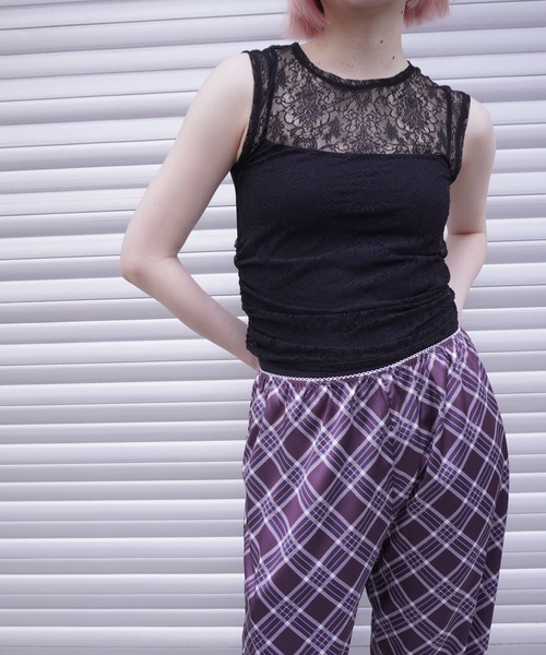 G.V.G.V. (ジーヴィ ジーヴィ)ストレッチレース スリーブレストップ 【Fabric】 繊細な表情のストレッチレース素材。T400を使用したポリエステル100%の生地のため快適なフィット感と抜群の伸長回復性を持っております。 伸縮性あり。透け感あり。 【Design】 脇のゴムギャザーがポイントのストレッチレースのノースリーブトップス。チクチクしづらい柔らかいストレッチレースが肌を優しく包みます。インナーの上からご着用いただくレイヤードアイテムになります。 ジャストサイジング。 ’25 SS COLLECTION - A woman’s daily life - デザイナーMUGの思い描く大人の女性像を形にしたコレクション。 ブランドのコンセプトに沿ったマニッシュなセットアップスタイルをはじめ、 ボリュームのあるフェミニンなスタイルや、カジュアルなスタイルを 一人の女性が様々なシーンで着こなす姿をイメージ。 レースやラメなどをスパイスに、 MUGのお気に入りの曲のタイトルからインスパイアされた数字のグラフィックや オリジナルのチェック柄、さらには機能性素材を使用したアイテムなど それぞれ違った個性を持つアイテムを、レイヤードなどのスタイリングで提案する。 G.V.G.V. 桑沢デザイン研究所卒。 カルチャー、音楽のエッセンスと、時代感を表現するブランドとして1999年にスタート。 フェミニンとマスキュリンの同居するオリジナルな世界観と、自由な発想で繰り出すコレクションは、ミュージシャン、アーティスト、ファッション業界などを中心にコアなファンを築いた。ブランドスタートから20年の節目となる2019年より、 素材やシルエットへの更なる拘り、ミニマルとエッジの調和の取れたバランスに注力したコレクションを再考。 ファッションに夢中になって年を重ねてきた女性たちが楽しめる、大人に向けた服とスタイルを提案している。