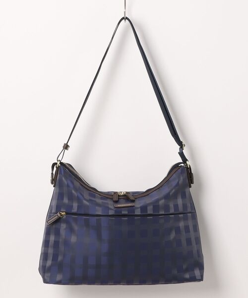 アメリアシリーズに、きれいめスタイルに合わせやすいドビーチェック柄が登場 長財布や小さめガイドブックも入る、街歩き~観光まで使いやすい大きめショルダーバッグ。 【セットアップ】スーツケースなどのプルドライブハンドルに固定し、走行時にバッグのふらつきを防ぐ機能。 【フロントポケット】さっと出したい小物の収納に便利なフロントポケット。 【内装ポケット】小物雑貨を収納できる内装ポケット。 【ショルダーベルト】長さ調節可能なショルダーベルト ---------------------- 機能詳細 <内装> ・クッション付きポケット ・ファスナーポケット ・ポケット <外装> ・フロントポケット ・セットアップ機能