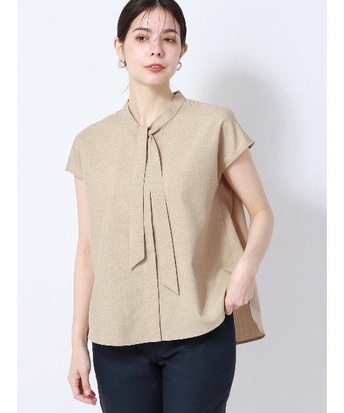 アイテム説明 着心地も見た目も涼し気な、麻調素材を使用したボウタイブラウス。シンプルな細めのボウタイで、どんなボトムスとも相性の良いアイテムです。 ・肩先までカバーする、フレンチスリーブは通気性も良く真夏の通勤着に最適◎ ・フロントは裾までボタンで開閉できる比翼仕立てのため、メイク後の着脱も安心 ・撥水加工を施しており、急な雨や汗シミも気になりにくい ・麻見えするポリエステル素材で、洗濯後もシワになりにくくお手入れも簡単♪ ・タテヨコの織感がキレイな「ベージュ」「ネイビー」と、テラコッタカラーがこなれ感を生み出す「オレンジ」の3色展開 アイテム詳細 【仕様】ボウタイ/フレンチスリーブ 【洗濯表示】洗濯機可(ネット使用・弱水流) 素材 ポリエステル100% サイズ詳細 モデル:163cm B80cm W60cm H88cm 着用サイズ:38 【38】着丈64.0cm バスト120.0cm 裄丈30.5cm ※商品の仕上がりサイズ(出来上がり寸法)は上記のサイズ表をご覧下さい。 ※同サイズまたは同一商品でも、生産の過程で1.0cm~2.0cm程度の個体差や着用感の違いが生じる場合がございます。 ※カラー名は管理用の表記となります。実際の商品の色味は商品画像をご確認ください。 ※商品画像はできる限り実際の色に近づけて掲載しておりますが、パソコン環境により色味に誤差が生じる場合がございます。予めご了承下さいませ。 【おすすめシーン】 オフィスカジュアル、ビジネス、仕事、通勤 食事会、お呼ばれ、パーティー、セレモニー、2次会、1.5次会 成人式、同窓会、謝恩会 七五三、お宮参り、誕生日会、入学式(入園式)、卒業式(卒園式) 演奏会、発表会、参観日などの学校行事
