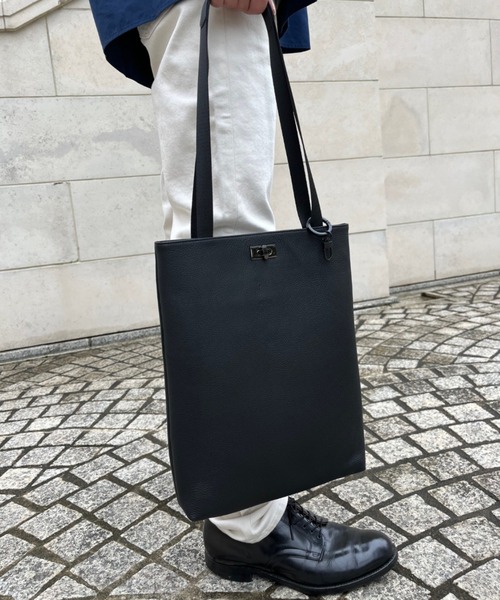 『KURO Series』 wakuのブラックカラーのみ展開のラインになります。 使用するレザーはもちろん、金具やファスナー等もすべてブラックで統一しております。 柔らかい質感の牛革を使用した、ひねり金具付きのトートバッグになります。 シボ感のある牛革は使用するたびに、なじんで柔らかくなっていきます。 フロント部分のひねり金具が印象的な仕上がりになっております。薄マチのすっきりとしたシルエットに、あえて少し長くした ハンドルが特徴です。A4サイズも収納可能です。 付属の取り外し式のリングがついており、鍵などもつけられます。 機能性と実用性を兼ねており、ジェンダーレスで御使用頂けます。 waku® (ワク) 多様化するライフスタイルの中で、「枠」にとらわれないデザイン。 身に付けることで愛着が「湧く」ようなものづくりを目指して、2021年にスタートしました。 国内外からセレクトした様々な素材を使用し、日常にフィットする機能性と実用性を兼ね備えた ジェンダーレスなカジュアルを提案していきます。