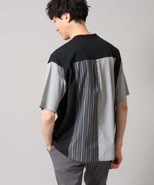 ◆〈デザテクシリーズ〉 カットソーとシャツ素材をMIXした絶妙バランスのテクニックカットソー◆ 【デザイン】 「デザテク」=大人のきれいめ見えデザインテクニックカットソー。 存在感のある切替を施したインパクトのある一枚。 きれいめ見えするストライプ素材とドライタッチなツイード素材を配色に取り入れ、デザインは大胆ながらも上品できれいめな雰囲気に仕上げています。 今季トレンドのハーフジップデザインで、ファスナーを少し開けて抜け感を演出。 ゆとりのあるワイドシルエットで、着用するだけでサマになるトレンドアイテムです。 【素材】 身頃部分は目面のきれいなコットン100%の天竺素材。 配色部分にきれいめ見えするストライプ素材とツイード素材を使用。 程よく肉感があるため、身体のラインが目立たずきれいに出るためオススメです。 ご自宅で気軽に洗濯機で洗えるので、お手入れも簡単でデイリーユースに着用いただけます。 【スタイリング】 一枚で完結する主役級アイテムは、夏に重宝すること間違いなし。 スラックス合わせできれいめな印象に。 カジュアルスタイルであればタック入りなどのゆとりのあるパンツとあわせるとバランスの良いコーディネートに。 ---------------- 透け感:なし 裏地:なし 伸縮性:ややあり 光沢感:なし 生地の厚さ:ふつう ---------------- ≪お気に入り登録機能の使い方≫ ■商品のお気に入り登録(ハートマークをクリック) 再入荷通知や値下げ等、お得なご案内を受けることができます。 ---------------- ※商品画像は、光の当たり具合やパソコンなどの閲覧環境により実際の色味と異なって見える場合がございます。 商品の色味の目安は商品単体の画像をご参照ください。