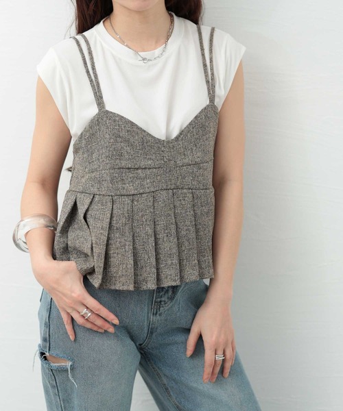 【アイテム】レイヤードで楽しめるトレンドライクなプリーツデザインビスチェです。プリーツ部分が綺麗なフレアシルエットを描き立体的なシルエットに。着丈は腰にかかるくらいの丈です。ノースリーブです。トレンドライクな細めのダブルショルダーが華奢見え。垂れるひもが可愛く、後ろ姿も着映えること間違いなし。後ろ部分にはシャーリングゴムが施してあり、ストレスフリーな着心地に。ブラック・ブラウンの2色展開です。エレガントなコーディネートに仕上がります。【シーン】お出かけ、旅行、ランチ、ディナー、女子会、デートに活躍します。【体型カバー】プリーツがウエスト・腰周りをカバーしてくれます。※お使いのディスプレイにより色味が異なって見える場合がございます。ご了承の上お買い求め下さい。※他のキャンペーンにより、期間中に価格が変動する場合があります。☆『お気に入り登録』でお得な情報がいっぱい☆■「商品のお気に入り登録」で再入荷通知や、在庫残り僅かの通知、セール通知も受け取ることができます。■「ブランドのお気に入り登録」で新商品や再入荷など、お得な情報を受け取ることができます!是非ご登録くださいね☆