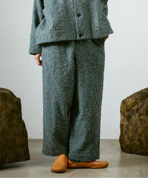 ANLIO 2025-26 STYLING LOOK- 日常にとけ込む個性 -animum(心)、alio(変える)、ont(存在) = ANLIO デザイナーの自由な発想からつくられるデザインと遊び心が詰まった服。その服は、着る人自身の魅力と心を変えてくれます。暑さが続く季節も終わりを迎え、新しい季節の便りが聞こえてきました。ANLIO がセレクトするブランドの服を用いて秋冬スタイリングルックを公開。日常の中にとけ込み、個性を引き上げてくれる服達をぜひご覧ください。色調豊かなツイード生地にニードルパンチ加工を施し、モコモコとした独特な表情を描いた新作生地。※手洗い可能直接肌に触れても心地よい肌触りが特徴です。複雑に織り混ざった生地のカラー表情も魅力です。ヘムにかけてたっぷりとワイドシルエットにに仕上げたパンツ。動くたびにドレープが生まれ、表情を加えてくれます。裾口にはスナップボタンを装飾し、ボタンを留めることでワイドからテーパードのシルエットを変えることが可能です。小さなポケットを組み合わせたパックポケットもアクセントになっています。同素材でセットアップアイテムも展開。トータルでのコーディネートもおすすめです。ブラック、ブルーの2色を展開しました。STYLING LOOK MODEL 丸 風馬(BARK IN STLYLE) H181 着用サイズ2Men's Model / RYURA H180 着用サイズ1Ladies' Model / AYA WATANABE H167 着用サイズ0Dulcamara 2025-26 A/W COLLECTION今季のよそいきシリーズは従来より薄くすることで近年の気温上昇にも配慮した仕上がりに。色調豊かなツイード生地にニードルパンチ加工を施し、モコモコとした独特な表情を描いた新作生地も登場。長く着古したような色斑のある人気のヴィンテージナイロン、肌触りと暖かさをもった縮絨ウール、光沢感と柔らかなタッチのモールスキン、軽く耐久性に富み、アウトドアでも重宝されるリップストップナイロン、ジャガード柄でビンテージのような風合いを閉じ込めたデニム生地など、多種多様なファブリックを描きました。 macromauroとのコラボ新作や、素材を春夏に人気を博したデニムパンツも再発売いたします。ゆったりとしたブランドらしいシルエットと、幅広いアイテムを組み合わせてつくるスタイリングコーデをお楽しみください。