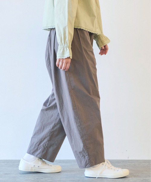 存在感がありつつ、どんなトップスにも合わせられるような履きやすいパンツがあったらいいなと思い、ボリュームおさえめのコクーンパンツをつくりました。綿100%で張り感がありデイリーに履ける一枚です。============================透け感:なし裏地:なし伸縮性:なし光沢感:なし============================※素材の特性、お取り扱いの注意水洗い可・・・中性洗剤使用アイロン可・・・あて布使用bulle de savon(ビュルデサボン)BRAND CONCEPT女性、誰もが ふっと子供の頃を思い出し 少女のような気持ちに戻れる服。 bulle de savon =シャボン玉の事 石鹸の泡とか、においなど、 懐かしい感じ。設立年月日 1994年8月※アイボリー、ブラウン、イエローはサンプルです。実際の商品と仕様・加工・サイズ等が若干異なる場合がございます。※モデルの着用画像は光の関係で商品の色味が若干異なります。※取り扱いの注意については取り扱い表示をよくご確認の上、着用をお願いいたします。※工場の生産の都合上、入荷の時期が前後する場合がございます。ご了承ください。