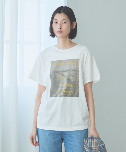 フランスのアウトドアブランド「LA HUTTE(ラ・ユット)」とのコラボTシャツがこの夏も登場 今回は、コートダジュールの海岸風景をプリントした、夏のバカンス気分が高まる1枚。 フロントには「VIVEMENT LES VACANCES(ホリデーを楽しみにしている)」のメッセージ入り。 少しゆったりとしたシルエットでリラックス感がありつつ、すっきりとした着丈でバランスよく着られるデザインです。 素材にはハイゲージのコットン素材を使用し、さらりと軽やかな肌触りが魅力。 今の時期はシャツやジャケットのインナーとして、夏には1枚で爽やかに。ロングシーズン活躍するおすすめTシャツです。 コーディネート 【デニムパンツや白のワイドパンツ】 Tシャツの軽やかさを活かした爽やかなリラックスコーデに。 小物はカゴバッグやレザーのサンダルなどナチュラルなものを合わせると、夏らしい抜け感のあるスタイルに仕上がります。 【レイヤードスタイル】 春先や初夏には、リネンジャケットやデニムジャケットを羽織って。 少しゆったりめのシルエットなので、インナー使いでももたつかずバランスよく決まります。 裏地:なし 透け感:ホワイトは少しあり 生地の伸び:あり 光沢感:なし ケア方法:手洗い可 【LA MARINE FRANCAISE】 「海と空と太陽と共に」 海と空と太陽の輝く中、風に乗って動き出す。 マリンフランセーズはアンカーを降ろし港で停泊する時を超えて、新たな時代に向かって船出する。 風を受け、大きく帆を広げて。 南フランスの空や海を愛する女性のイメージから生まれたマリンフランセーズ。 普遍的なフレンチのベーシックスタイルを軸に時代の空気感を上手く捉えながら、 身につけることで心を満たしてくれる、心にも、暮らしにも寄り添う上質な大人のカジュアルを展開。 上質で着心地の良い素材にこだわり、カラーリングやディテールが、ベーシックながらも心をくすぐる、 自分らしいライフスタイルを大切にする女性に向けてワードローブを提案します。 ※取り扱い・ケア方法については、商品についている品質表示でご確認ください。 ※照明の関係により、屋外で撮影した写真の商品は、実際よりも色味が違って見える場合があります。 またパソコン・スマートフォンなどの環境により、若干製品と画像のカラーが異なる場合もございますので予めご了承ください。 実際の商品の色味は、スタジオ撮影の画像をご参照下さい。