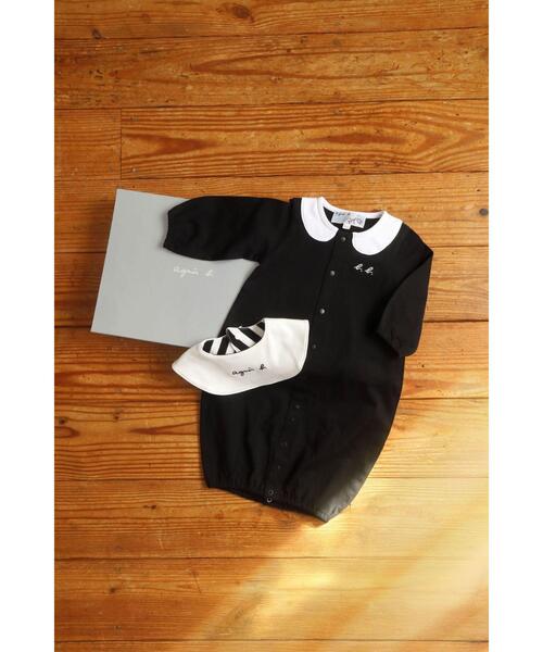 【WEB限定アイテム】 ロゴ刺繍の施されたボーダー柄スタイと、2WAYオールの2点入りギフトセット。 ギフトボックスに入っているので、お祝いの品やプレゼントにもぴったりです。 ・ギフトにピッタリなロゴスタイ。 裏面はアニエスベーらしのあるボーダーのデザインで、肌触りの良い綿100%で通年使いやすい素材です。 ・襟がトロンプ・ルイユ(だまし絵)になった、コットン素材の長袖2WAYオール。 丸みのあるフォルムでヒップにゆとりがあり、袖口、裾にゴムが入ってることで、よりキュートな印象を与えてくれます。 産まれてすぐはベビードレスとして、それ以降はカバーオールとして1才くらいまでと長い期間着用出来るのも魅力です。 フランス語で赤ちゃん(BEBE:ベベ)という意味のb.b.のアニエスベーらしいロゴ刺繍もポイントになっています。 ※サイドがドット柄のギフトボックスに商品が入り、リボンがけされた状態でのお届けとなります。ショッパー(紙袋)は付属しておりませんので、あらかじめご了承ください。 ※着用前には、水洗いをおすすめいたします。 ※商品にアテンションカードや品質表示タグが付属している場合、必ずご確認の上、お取り扱いください。 <スタイ> 原産国:日本 組成:綿100% 実寸情報 縦:20cm/横:24cm <長袖2WAYオール> 原産国:中国 組成:綿100% 実寸情報 総丈:53.5cm 縦:12cm/横:13cm <価格改定のお知らせ> 2026年2月4日より、原材料価格の上昇などによる価格改定をさせて頂く商品です。 下げ札とサイト上の表示価格が異なる場合がございますが、サイト表示価格が正しい販売価格でございます。 何卒ご了承下さいますよう、お願い申し上げます。 (##)