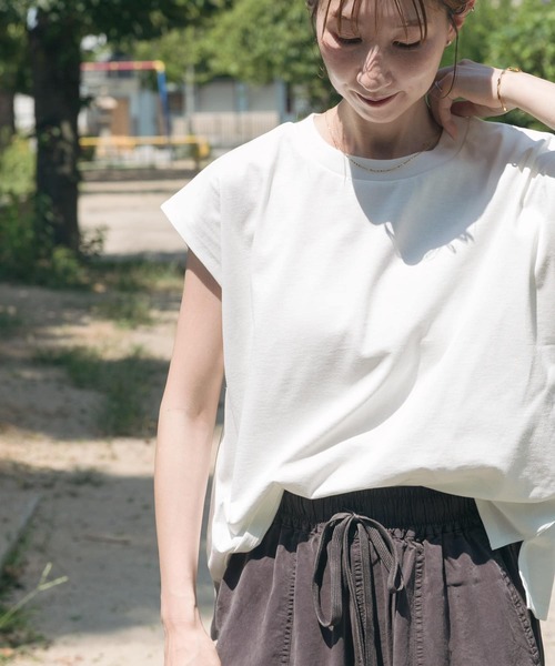 さらりとした着心地が快適なクルーネックのノースリーブTシャツ。袖は肩から少し落ちたデザインで、気になる肩回りをさりげなくカバー。インでもアウトでもバランスよく決まる、これからの季節に活躍間違いなしの一枚です。【2025 Spring/Summer】【25SS】※商品画像は、光の当たり具合やパソコンなどの閲覧環境により、実際の色味と異なって見える場合がございます。予めご了承ください。※商品の色味の目安は、商品単体の画像をご参照ください。▼お気に入り登録のおすすめ▼お気に入り登録商品は、マイページにて現在の価格情報や在庫状況の確認が可能です。お買い物リストの管理に是非ご利用下さい。素材感透け感 : ややあり(WHT, L.GREGE)伸縮性 : ややあり裏地 : なし光沢 : なしポケット : なしFREE