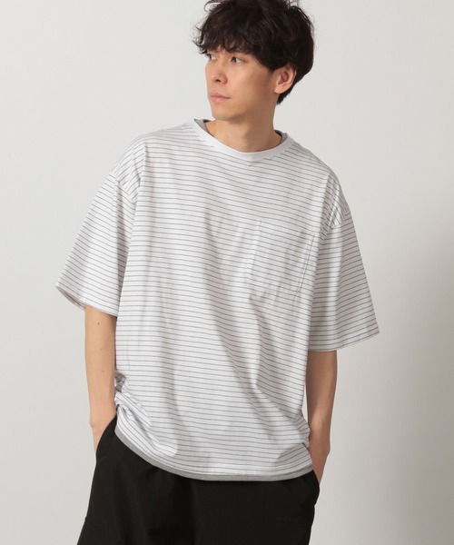 ワッフル素材のTシャツにボーダーTシャツを重ねたようなデザインで、一枚でスタイルがきまります。 ゆとりのあるシルエットでリラックス感のある着こなしが楽しめます。 【素材】 柔らかい肌触りで着心地抜群。 汗をかいてもべたつきにくく快適に着られます。 【スタイリング】 一枚着はもちろん、羽織のインナーにも。 デニムやカーゴパンツ、チノパンなどカジュアルなアイテムとの相性抜群。 女性が大きめに着てもかわいくきまります。