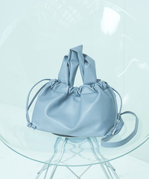 巾着型のシンプルなショルダーバッグ。定番カラーと馴染みやすいブルーをご用意し、上品にもカジュアルにも合わせやすいアイテムです。【素材】・軽量。・ソフトでなめらかな質感のフェイクレザー。・つるっとしたきれい見えする素材。【デザイン】・350mlペットボトルが入るサイズ。・取り外し可能なショルダーベルトが付いた2WAY仕様。・イヤホンや鍵などの細かい荷物を整理しやすい内ポケット付。・ぽってりしたハンドルがアクセントに。・口元のギャザーがフェミニンな印象。