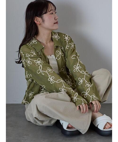 お花のような模様のコード刺しゅうが可愛らしい襟付きカーディガン。シアーな質感と襟付きのデザインで、トレンド感のあるスタイリングを演出。コーディネートに取り入れるだけでも、シーズンらしい軽やかな着こなしに決まるアイテムです。※商品画像は、撮影環境やお客様のご利用のPC・スマートフォンのモニター環境などにより実物と色味に差異がある場合がございます。