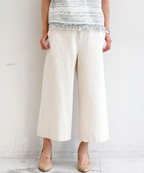 ノータックですっきりと仕上げたクロップド丈のガウチョパンツ。 生成りのカツラギコットン素材が、張りのあるナチュラルな雰囲気を演出します。 ウエストインからアウトまで、様々なトップスと相性が良く、アレンジも多彩。 旬のワントーンコーディネートもオススメです。 店舗にてお問い合わせの際は、 全国のBEAUTY&YOUTH 各店舗まで下記の品番をお申し付け下さい。 品名:BBC TWL CLPD WIDE 9LS 品番:1614-217-4007
