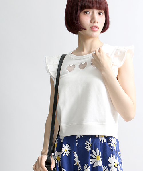 フリルデザインを採用したスリーブスウェット。フロントのハートをレースでくり抜いたデザインが、手軽に着こなしのアクセントになります。大ぶりなフリルデザインがフェミニンな印象を着こなしにプラスしてくれるひと品。一枚で着用頂くのは勿論、今季はハットやスニーカーと合わせるような着こなしもオススメです。 +++ハートモチーフアイテム一覧はこちら+++ WEGOの特集ページはコチラ