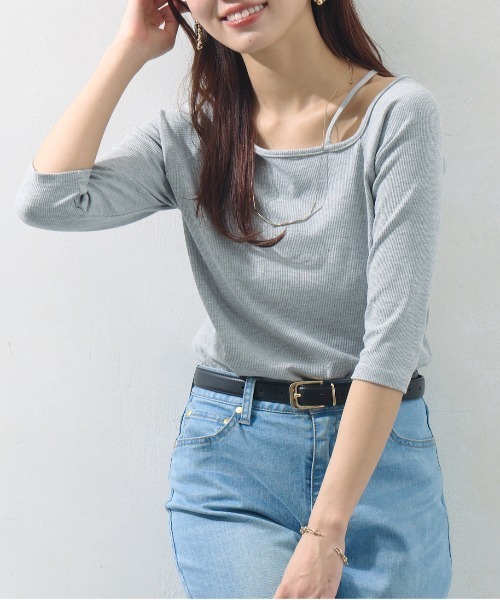 インフルエンサーITAMI企画第5弾 ヘルシーな肌見せで女性らしさを演出 ■point 大好評いただいたアシメネックロンTが7分袖になって登場! チクチクせずストレスフリーな着心地で、コンパクトすぎないシルエットで体に程よくフィット◎ ネックラインがアシンメトリーなのでデコルテやお顔まわりがすっきりと見えるのも嬉しいポイントです。 肩ひものデザインがヘルシーで女性らしく、シンプルなデザインながらも1枚で決まります。 ■coordinate スカートやスラックスできれいめスタイルに♪ デニム合わせでカジュアルにも合わせていただけます。 1枚で着るのはもちろん、ベストやワンピースのインナーとしても使えて着回しの効く1着です! ▼オススメスタイリング▼ セミフレアデニムパンツ 【細身サイズ】2タックスラックスパンツ カットジャガードナロースカート ■fabric レーヨン95%ポリウレタン5% -------------------------------------------------- 裏地:なし 光沢感:なし 伸縮性:あり 生地の厚さ:普通 洗濯方法:手洗い可 -------------------------------------------------- ※生産の都合上、お届け時期が前後する場合がございます。 ご注文いただいた予約商品のお届け時期の確認は、注文履歴ページより行えます。 ※商品画像は製品前サンプルにより着用イメージです。 光や角度により、実物と色味が異なる場合がございます。また表示のサイズ感も実物とは若干異なる場合もございますので、ご了承ください。 ※着用、お取り扱いの際は、商品についている品質表示とアテンションタグを必ずご確認ください。 -------------------------------------------------- ♡をクリックでお得な情報をお知らせいたします。 <商品お気に入り登録> お気に入りアイテムのお値下げ・再入荷・在庫ラスト1点など通知を受けることができます。 <ブランドお気に入り登録> Chez toiの新商品・再入荷・SALE・クーポン配布などお得な情報を受けることができます。 -------------------------------------------------- Cheztoi/シェトワ フランス語で「あなたの家」という意味。 自分にまっすぐでそしてしなやかに生きる女性に向けたブランドです。