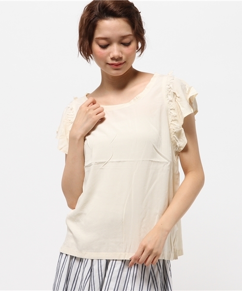 Kastane(カスタネ) レーヨンなので落ち感がありさらりとした着心地のトップス。肩に施されたフリンジは主張しすぎず、どんなコーディネートにも程よくマッチします。