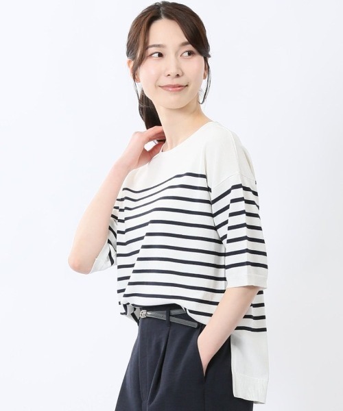 ■素材特徴 レーヨンにナイロンを混紡した、サラッとした風合いの綺麗目なニット(12G)を使用しています。さまざまな機能を兼ね備えている、毎日着たい快適素材です。 ■機能 【マシンウォッシャブル】洗濯機で洗えます。(要ネット・弱水流) 【ストレッチ】伸縮性に優れ動きやすく、長時間の着用もストレスフリー。 【接触冷感】肌に触れるとヒンヤリする機能で、清涼感があります。 【UVカット】紫外線を通しにくい生地を使用することでお肌を守ります。 【アンチピリング】毛羽立ちや毛玉が出来にくい特殊な糸を使用しています。 ■デザイン 綺麗目からカジュアルまでオンオフ兼用で着回せる、クルーネックの半袖ニットです。モノトーンのパネルボーダー、前後差のある着丈バランス、すっきり見える両脇のサイドスリットがポイント。Tシャツのように着れる手軽さと上品なルックスを兼ね備えた一枚です。 ■シルエット リラックス感のある、ややゆったりとしたシルエットです。気になる背中やウエストのラインを隠しつつお洒落に体型カバーが可能です。 ■コーディネート ベーシックなデニムと合わせてラフに、フレアースカートと合わせて甘めに、マニッシュなスラックスと合わせて綺麗目にも決まります。幅広いテイストに着回せるので、1枚持っておくと便利です。 フィット感:ややゆったり シーズン:夏 展開カラー:白(ホワイト)・黒(ブラック) *アテンションタグ・洗濯ネームを御確認の上、着用又は取り扱い下さい。 *光の当たる場所や高温多湿になる場所での保管は避けて下さい。 *使用の有無に関わらず、経年劣化は進行いたしますのでご了承下さい。 *閲覧デバイス・環境により質感・色味に誤差が生じる場合がございます。 * ZOZOTOWN お買い物ガイド 商品のお気に入り登録 ♡をクリックしましょう!完売カラーの再入荷通知や、ラスト1点の通知、セールの通知をお知らせします。 ブランドのお気に入り登録 新商品や再入荷など、いち早くお得な情報を受け取ることができます。 最短で翌日お届け 商品をカートに入れた後、注文内容の確認ページで「即日配送」を選択していただければ、最短でご注文した翌日にお届け致します。 (ZOZOTOW