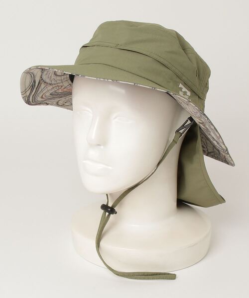 水陸両用のポリエステル素材を使用したマルチユースハット。取り外しができる首の日焼けを防止するサンシェードや便利なループストラップ付き。ブリムの裏側に入れたシーズナルプリントが特徴です。サイドにはワンポイントでWAVEロゴをあしらいました。UVプロテクション(UPF50+)が紫外線から肌をしっかりと守ります。紫外線や日焼け対策の機能性はもちろん、SUPなどのマリンスポーツやビーチファッションアイテムとしておすすめです。