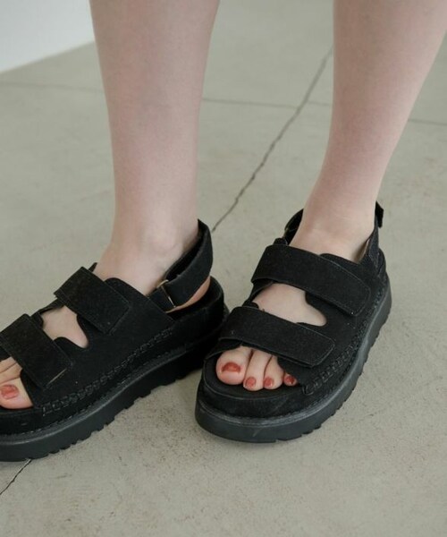 【スウェード調のナチュラルなプラットフォームサンダル】 ・スウェード調のアッパーとサイドのステッチデザインがナチュラルな雰囲気を演出 ・厚底でボリューム感のあるシルエットがトレンド感をプラス ・調節可能なストラップでフィット感を調節できます ~スタイリング~ カジュアルなアイテムからナチュラルなアイテムまで幅広いコーデに合わせやすいのも魅了的。 素足にはもちろん、ソックス合わせもおすすめ。 フラットソールで歩きやすくデイリーに活躍してくれる一足です。 ※着用、お取り扱いの際は、商品についている品質表示とアテンションタグを必ずご確認下さい。