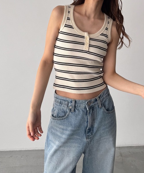 デザインヘンリーネックデザインがヘルシーな雰囲気を演出。1枚で着ても映えるボーダーデザインでコーディネートのポイントに!素材身体に沿うシルエットですが、ストレッチ性がありストレスフリーな着心地。コーディネート1枚で着ると夏らしいヘルシーな着こなしに。シャツやカーディガンと合わせたレイヤードスタイルもおすすめです。El mar(エルマール)El mar はスペイン語で『海』海に向かうときはだれでもワクワクする。洋服を選ぶとき、袖を通すとき、同じように心が踊るアイテムを提案したい。そんな『ワクワク』な気持ちを込めて El mar はデビューしました。-------------------------------------生地の厚さ:厚い〇〇●〇〇薄い伸縮性:あり透け感:なし裏地:なし光沢:なし-------------------------------------取扱い・蛍光増白剤が入っていない洗剤をご使用ください。・クリーニングネットをご使用ください。・濃い色と白 ・淡色物は分けて洗ってください。・洗濯で多少縮むことがあります。洗濯後はすばやく形を整えて干してください。タンブラー乾燥はお避けください。・アイロンの際は当て布をご使用ください。・着用時の汗や摩擦により、他の衣類や鞄などに色移りすることがありますので、淡色系との着合わせはご注意ください。・摩擦や引っかけにご留意ください。※取り扱い及びお手入れ方法については、商品についている取扱表示、洗濯表示にてご確認下さい。※照明の関係により、実際よりも色味が違って見える場合があります。またパソコン・スマートフォンなどの環境により、若干製品と画像のカラーが異なる場合もございます。※商品の色味は、商品アップ画像をご参照ください。